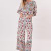 Robe longue imprimée, col V, manches 3/4, perles appliquées au cou et aux poignets. Cette robe bohème chic est un choix idéal pour les vacances.