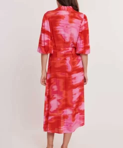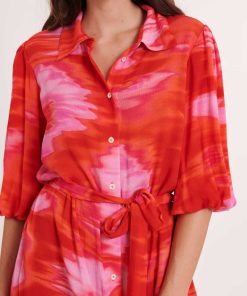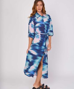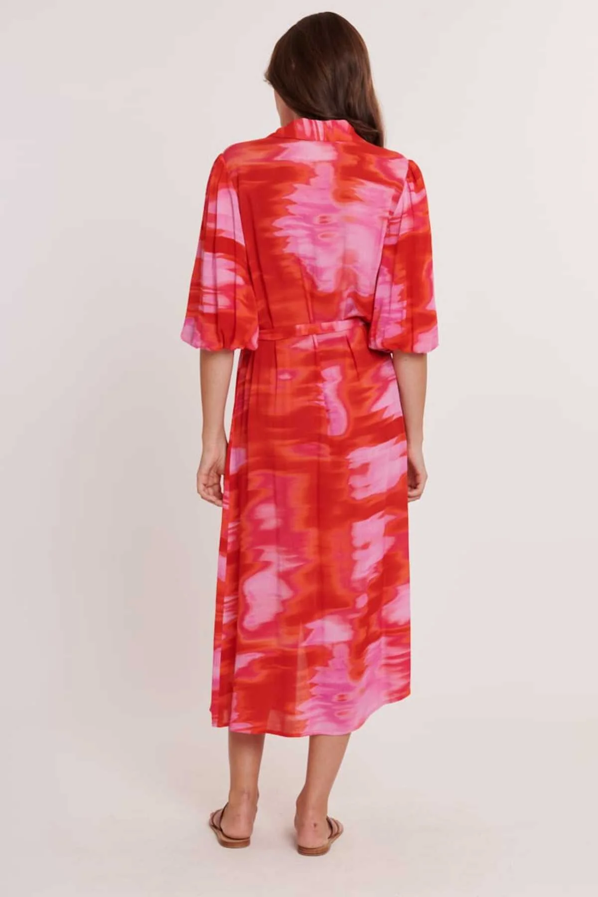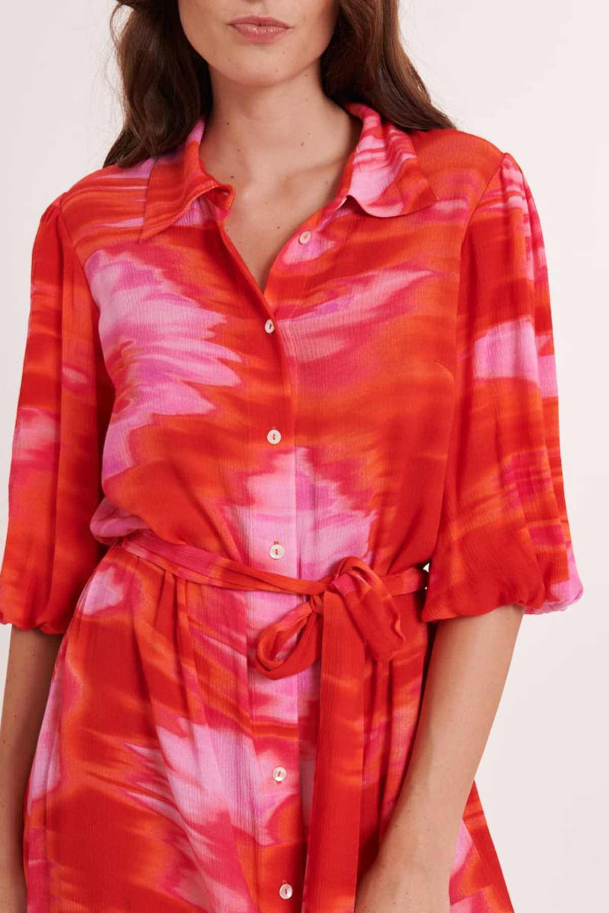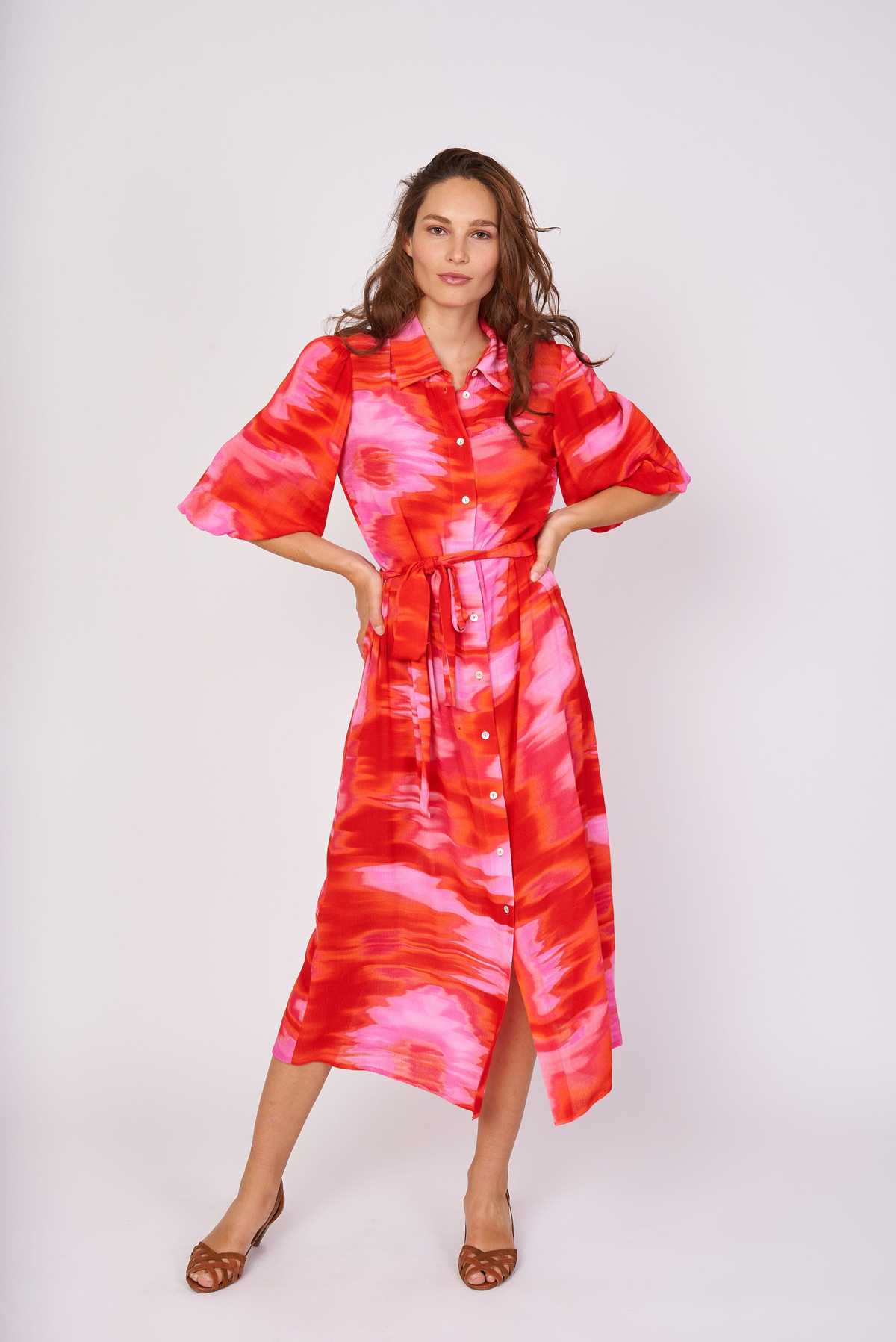 Derhy Robe chemise midi imprimée CIDALIA ROUGE/BLEU | FEMME Robes Longues