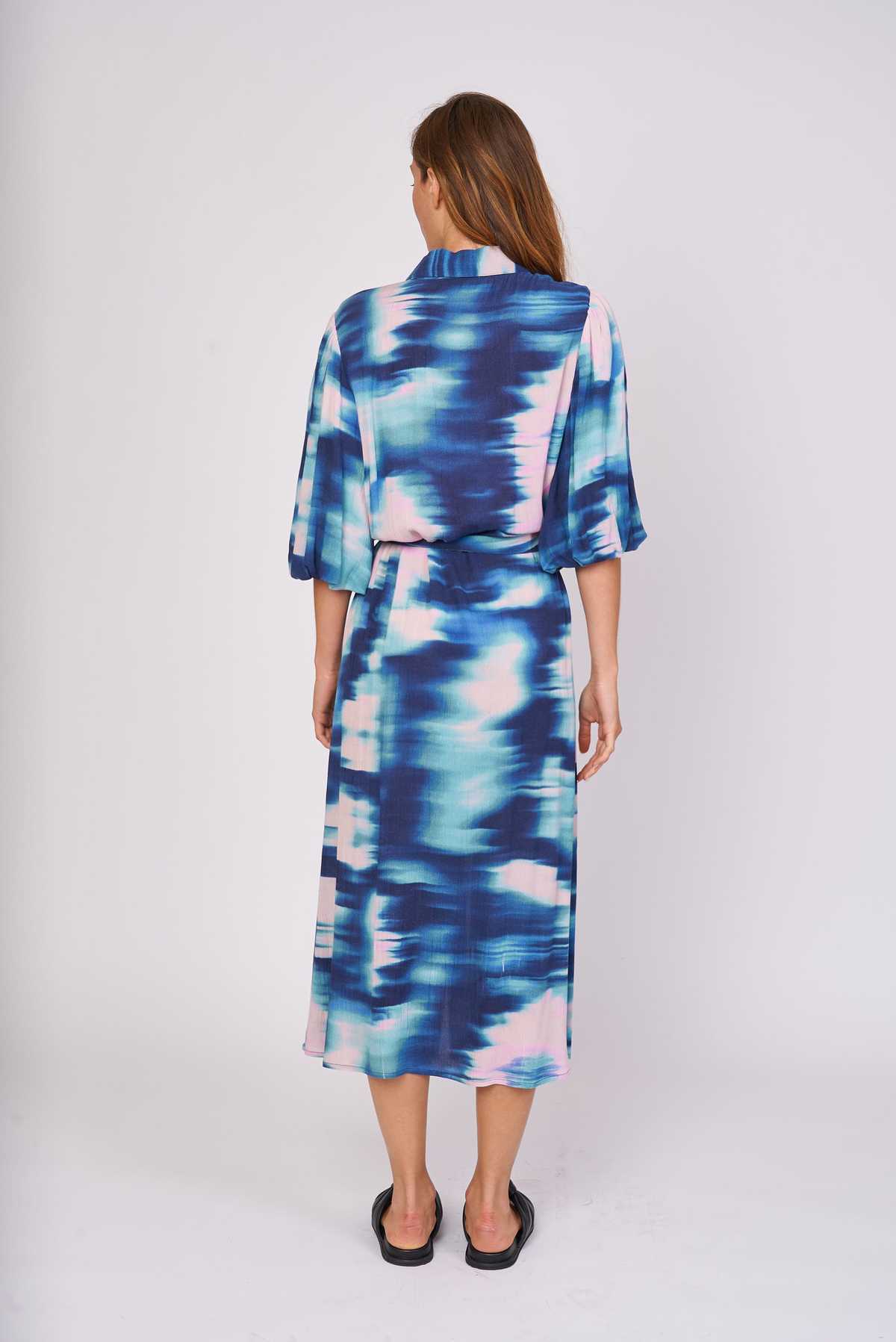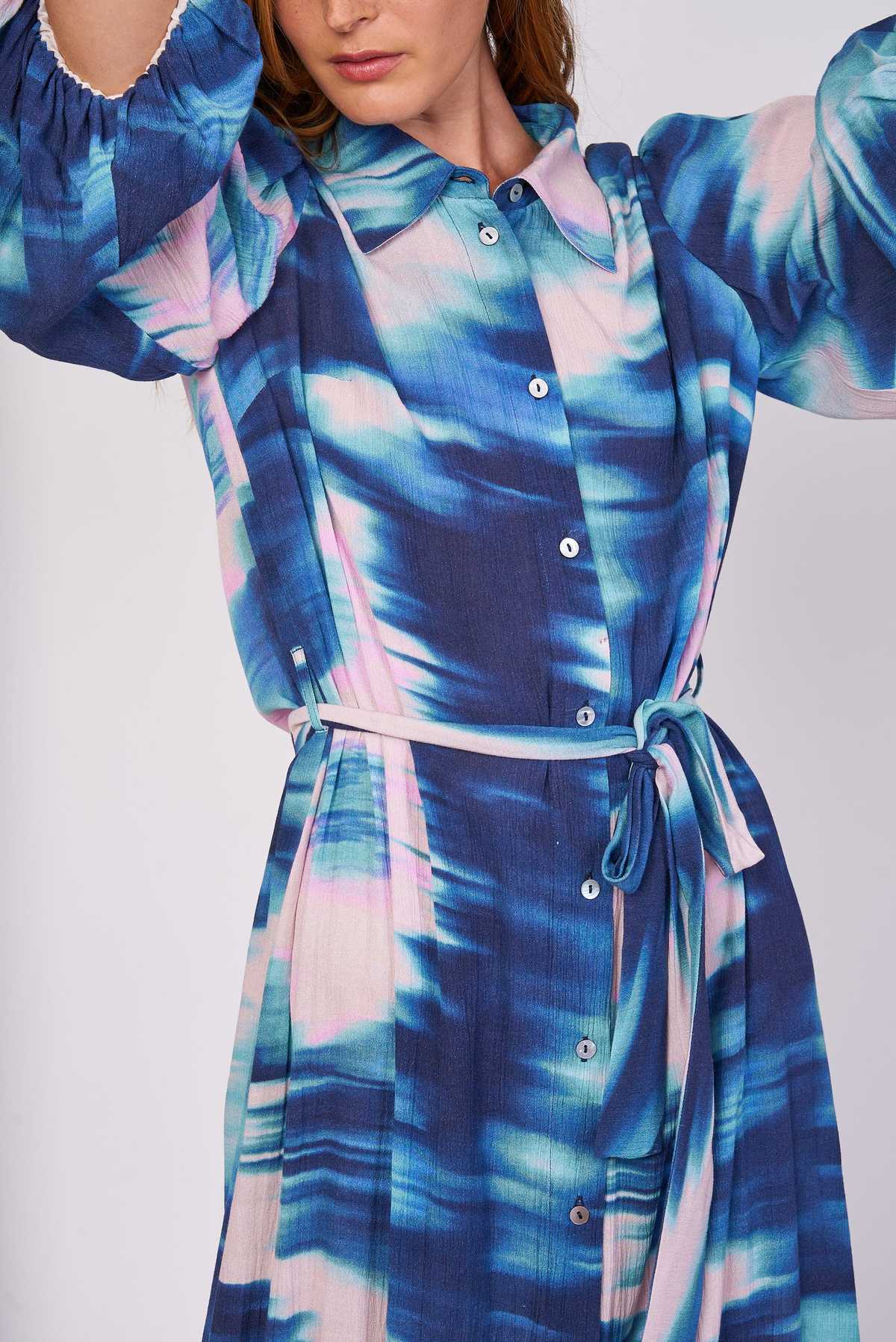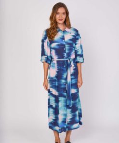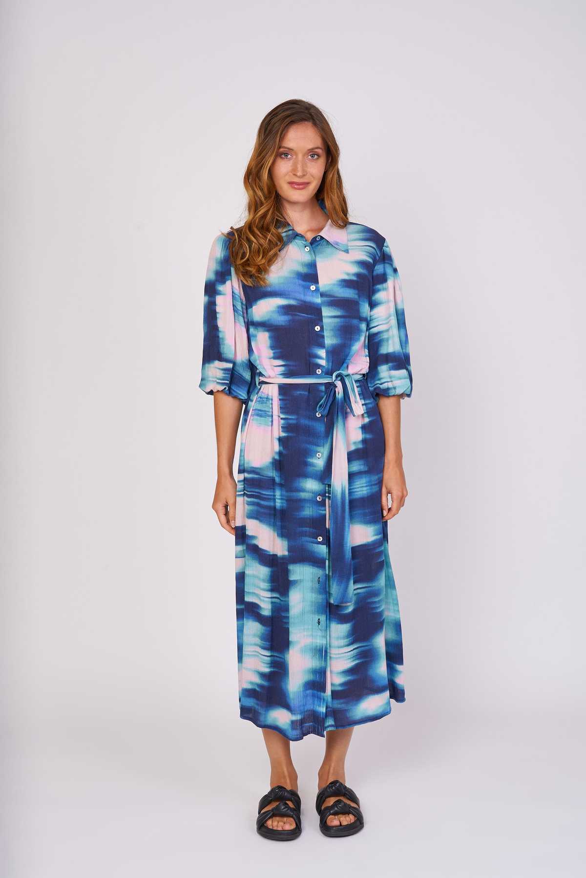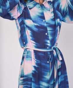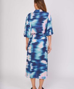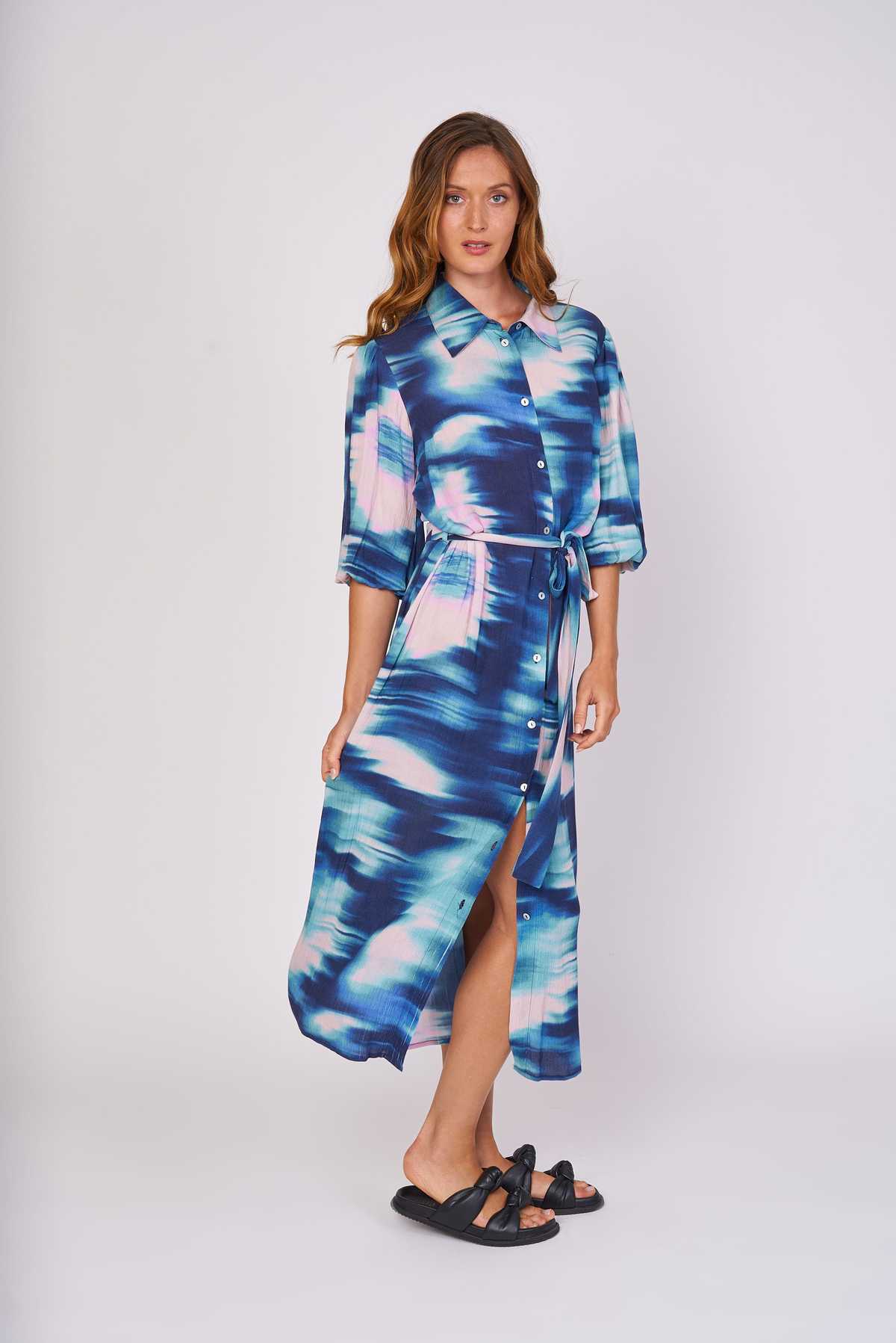 Derhy Robe chemise midi imprimée CIDALIA ROUGE/BLEU | FEMME Robes Longues